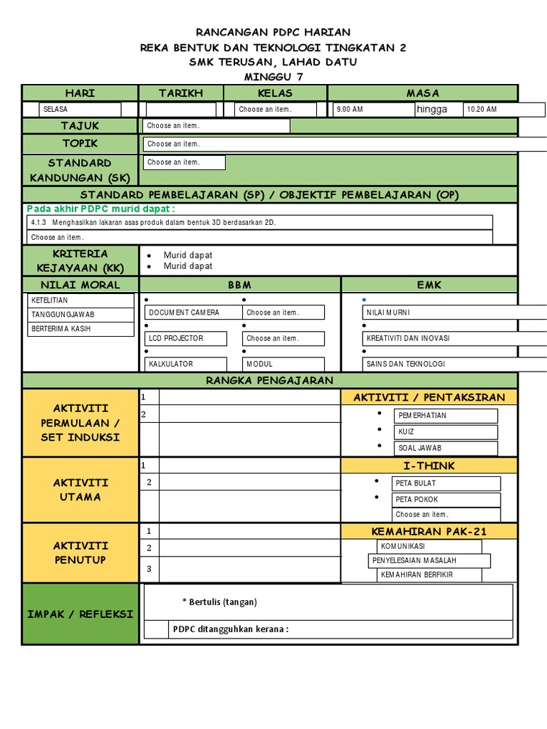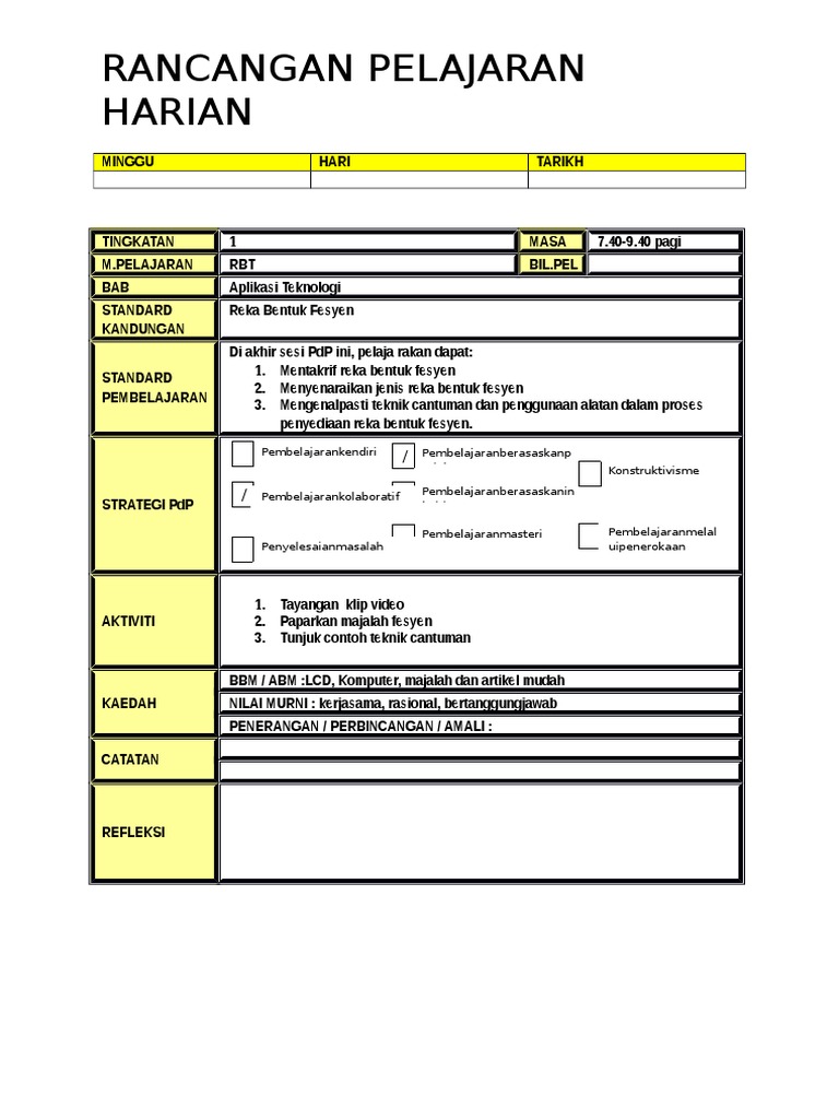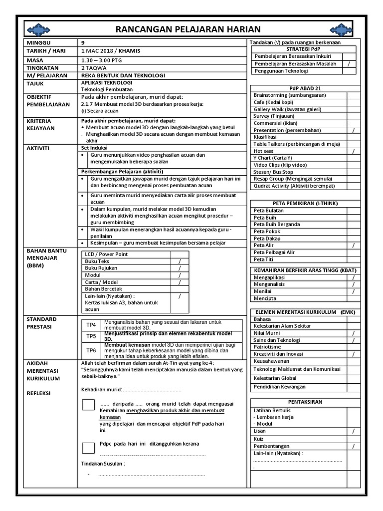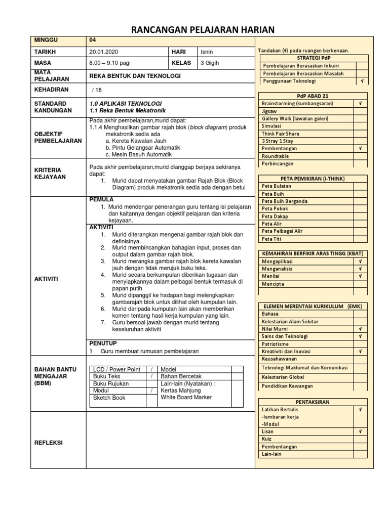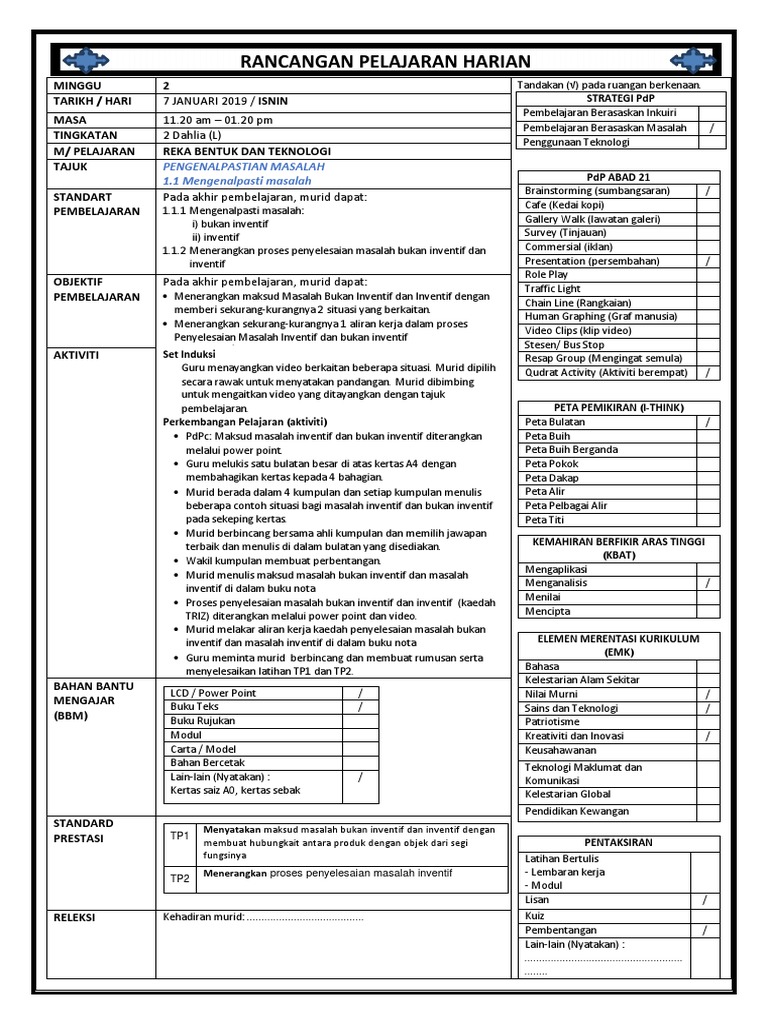 2016 RANCANGAN PENGAJARAN HARIAN RPH PENGGAL. RPT RPH DSKP 202223 FAIL GURU. Erph kssm reka bentuk dan teknologi tingkatan 1.